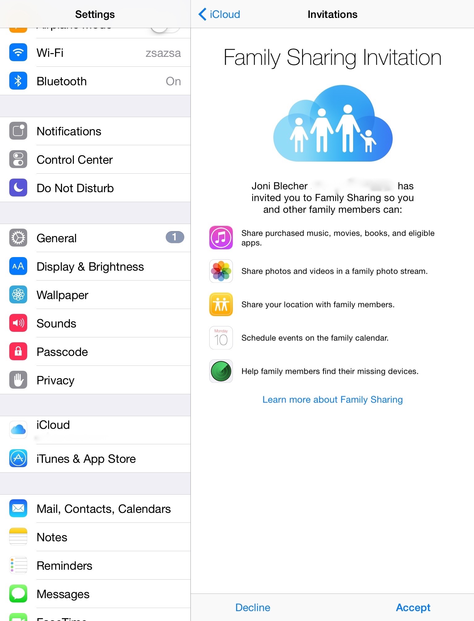 2. It will automatically open Family Sharing in the Settings on your device. Tap Accept at the lower right corner of the screen.