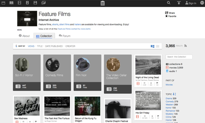 The site is fairly straightforward to navigate and users can even create collections that anyone can view. If you’re looking for a particular title, search works well. There are no commercials and a few file versions available to download. In addition to movies, the non-profit library also has classic TV shows, cartoons, books, and music all available for free. While many of the videos are in black and white, there are quite a few titles that are in color. The nice thing is that parents won’t really have to worry if their kids are watching questionable content, since most of it was created before the 1950s.