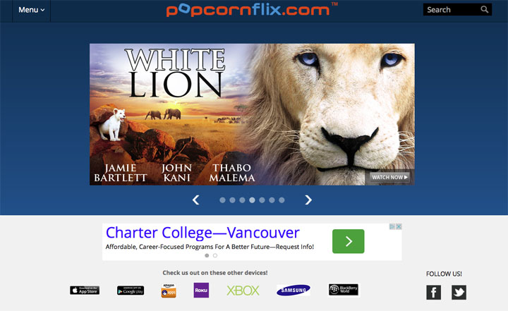 Popcornflix: It’s unlikely that you’ll see many movies on this site that have recently been in the theatres. The majority of the videos on Popcornflix are documentaries, foreign films, B movies, Wildlife features (many from National Geographic), Spanish flicks, and family shows. It is fairly easy to read the subtitles when watching a foreign film. Navigating the site is a breeze and it does feature some fun categories such as “Bromance before Romance,” and “Before they were Famous.” In the latter category, you could find a film featuring a young Ryan Reynolds staring in School of Life. Similar to other sites in this roundup, viewers need to enter birth date information in order to watch R rated movies.