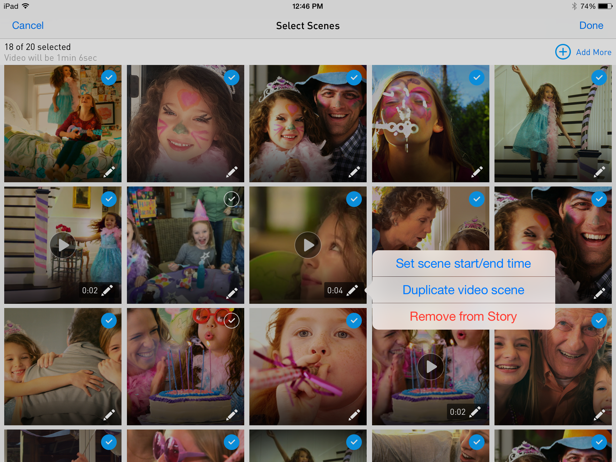A suggested RealTimes Story will select a certain scene from a video clip, however, that may not be the scene you want to highlight. Now, you can trim the video included in the Story to select the exact scene you want to feature. It’s super easy.